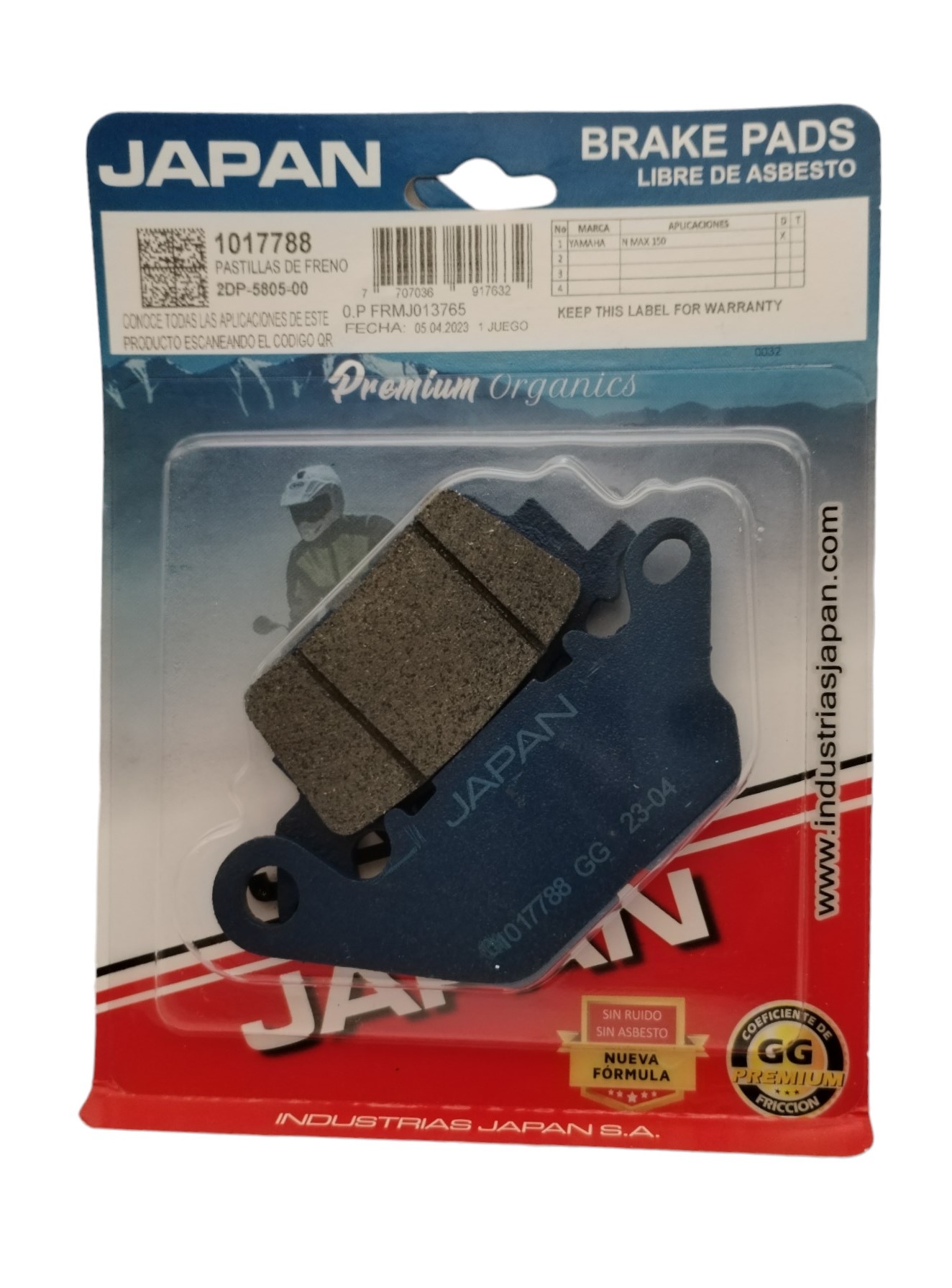 PASTILLA FRENO DELANTERA CRYPTON FI/N-MAX MARCA: JAPAN REF: 017788