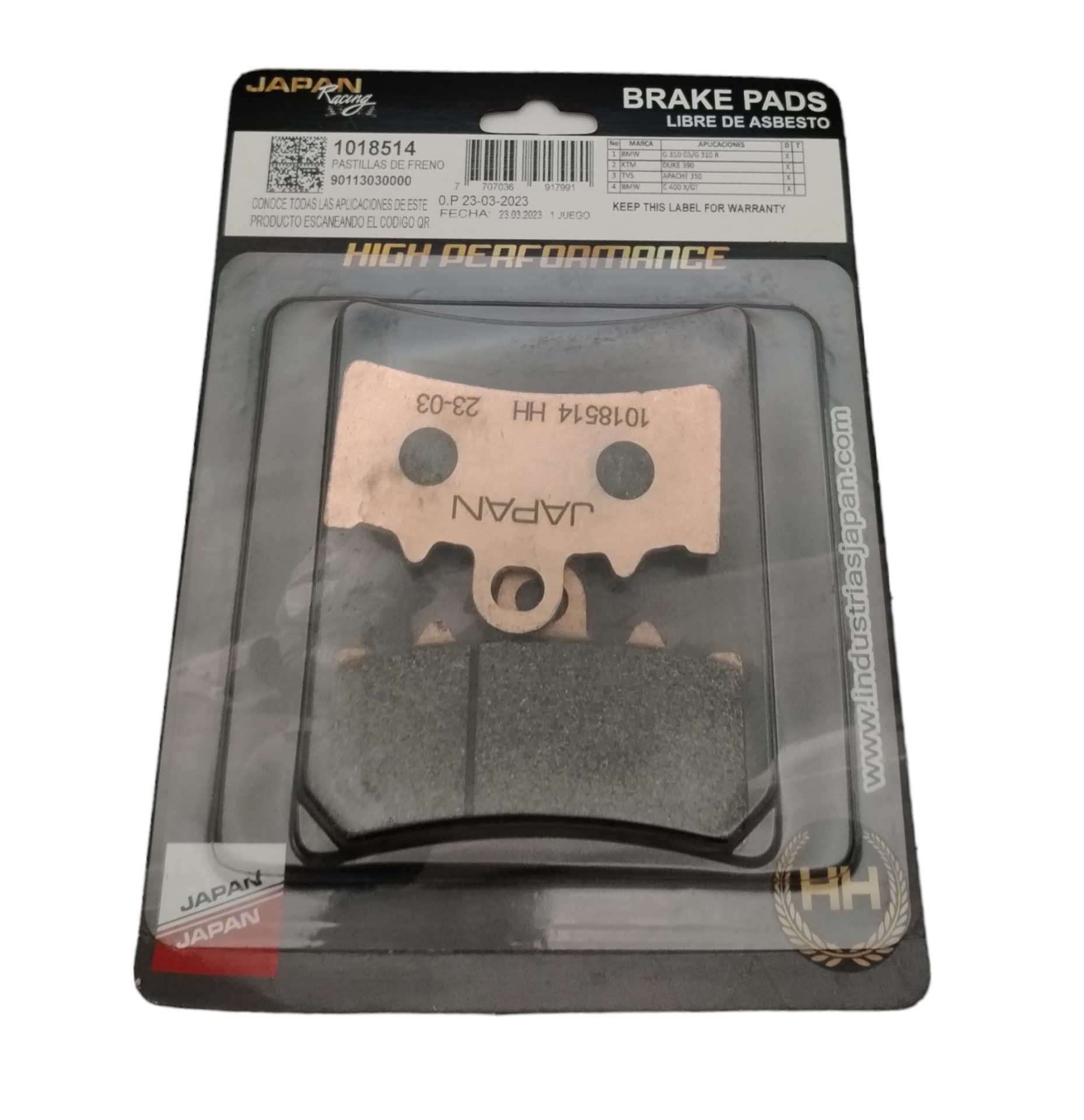 PASTILLA FRENO DELANTERA KTM200/250/390/ DOMINAR 400/250 MARCA: JAPAN RACING REF: 018514