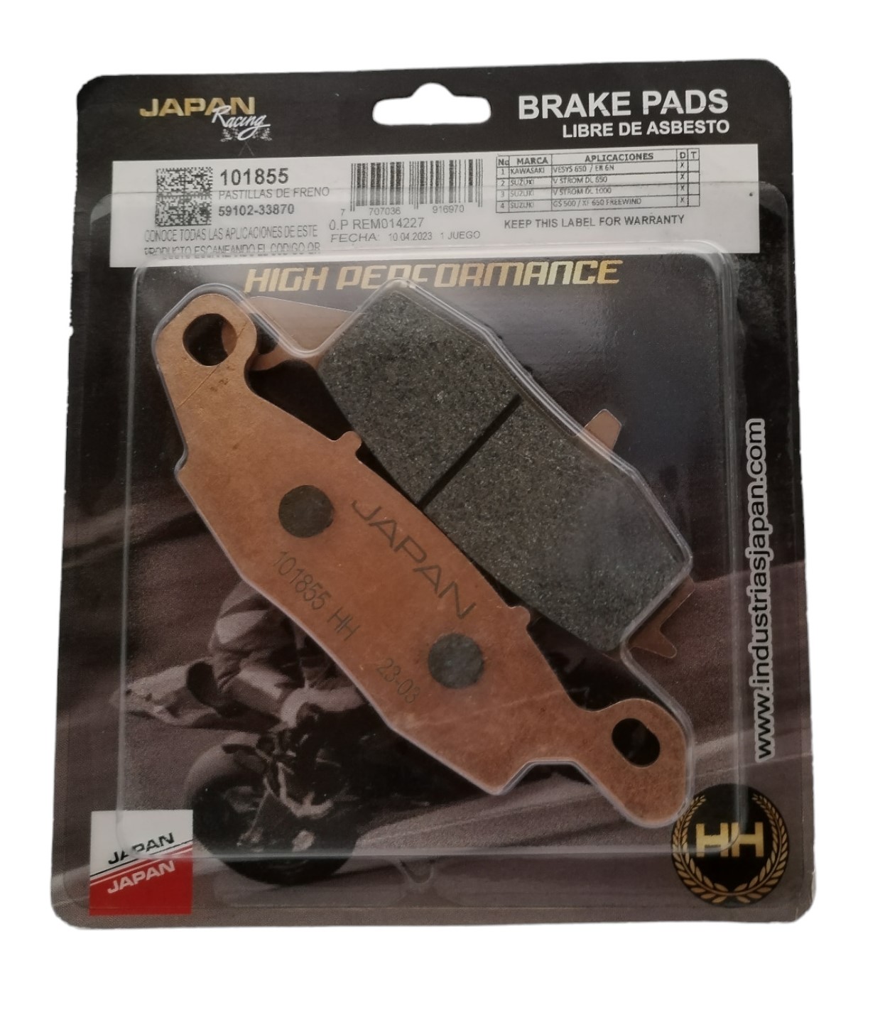 PASTILLA FRENO DELANTERA V STROM 650 / 1000 / GSX 750 / ER6N MARCA: JAPAN RACING REF: 01855