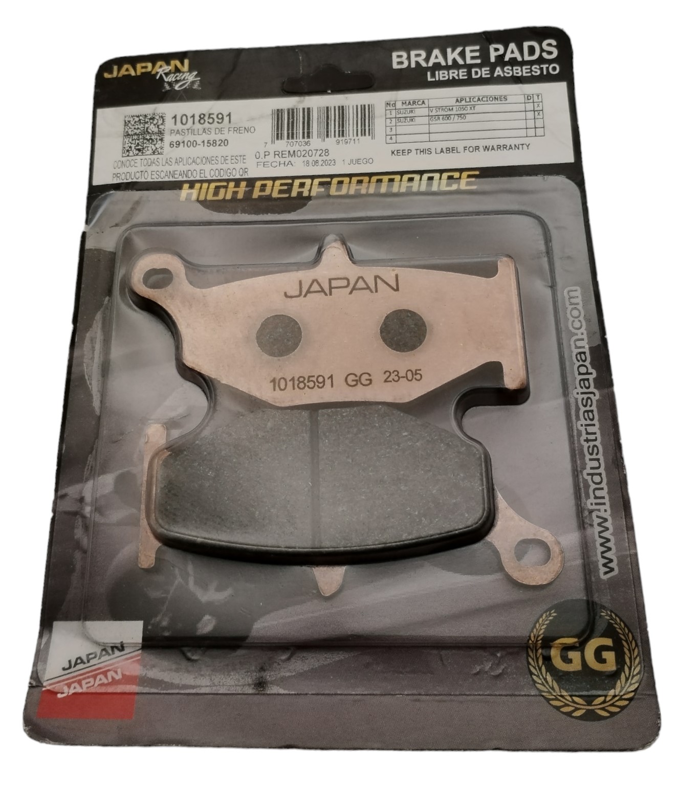 PASTILLA FRENO TRASERA GSXR 750 / 1000 / V STROM / HAYABUSA 1300 LTD ABS MARCA: JAPAN RACING REF: 018591