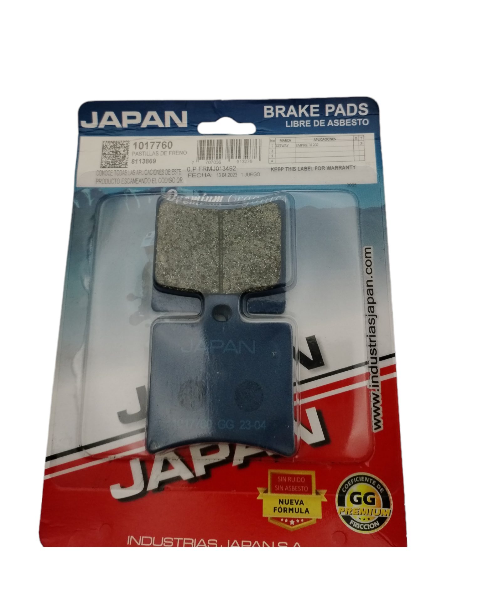 Sé el primero en valorar “PASTILLA FRENO TRASERA TX 200/ RKV 125 MARCA: JAPAN REF: 017760”
